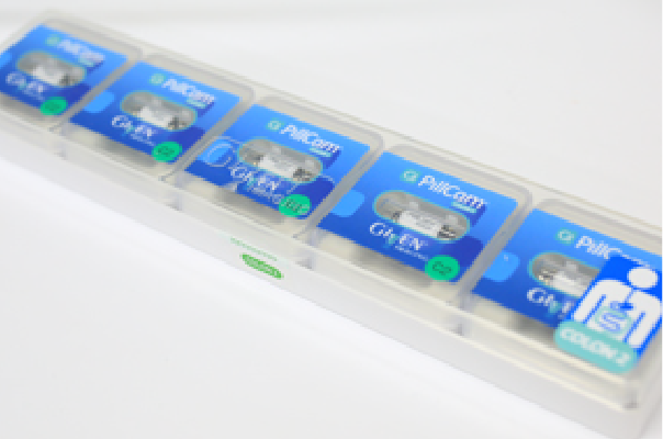 検査には、あらかじめ腸内をきれいにする必要があるため、当日の前処置として下剤を4リットル服用します。カプセル内視鏡検査は、長さ3.1cm、直径1.1cmのカプセル型の内視鏡を飲み込みます。カプセルには2台の小型カメラとライトが付き、約340度の範囲を写すことができ、1秒間に最大35枚の画像が撮影できます。そのデータは随時、受診者が肩から提げたレコーダーに送信され、数時間後、カプセルは便として排泄されます。